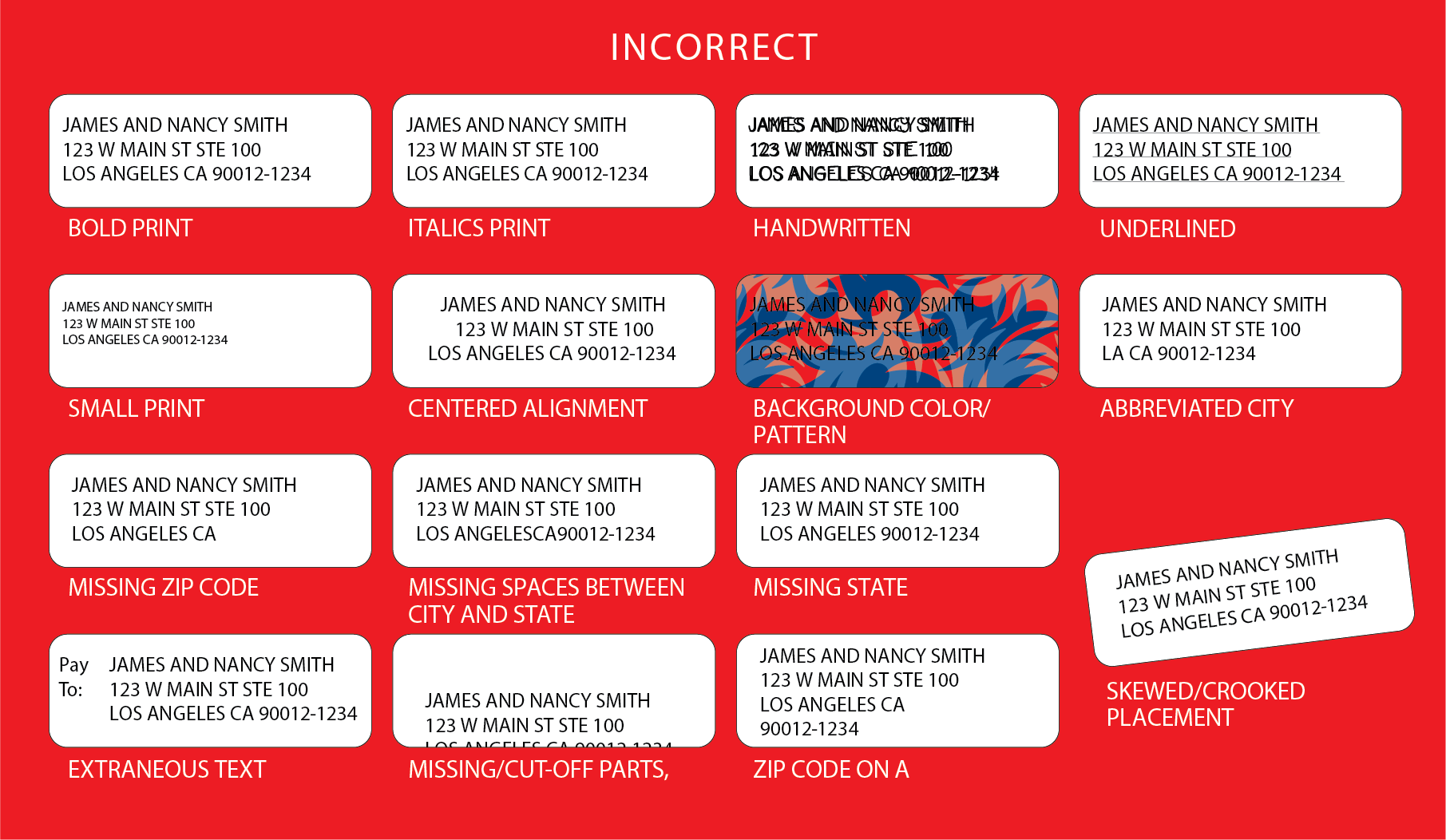 - Address printed on white background