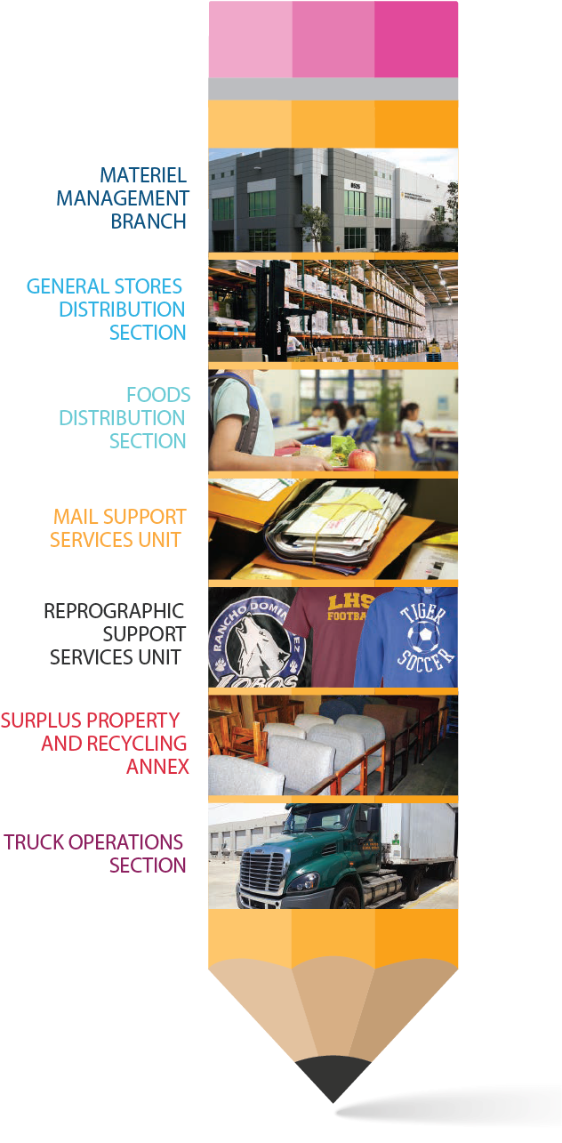 The classic definition of the term “Materiel” is, “equipment, apparatus, and supplies used by an organization or institution.” The term “Materiel” is a long standing term used in the business and government sectors in reference to the movement and distribution of goods, and the logistics support functions for large operational systems. One of the largest institutions most commonly using the term is the U.S. Military’s Materiel Distribution Centers. Likewise, as a large institution, the Los Angeles Unified School District has adopted the use of the materiel word to highlight the significance of the distribution operation's support function.